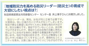 横手市が防災に関する情報誌「みんなで支える 災害に強いまち横手市 vol.6」を発行しました。 南部男女共同参画センター長が防災リーダーの育成について、お話させていただきました。 コチラからご覧ください→ 防災意識を高める情報誌…